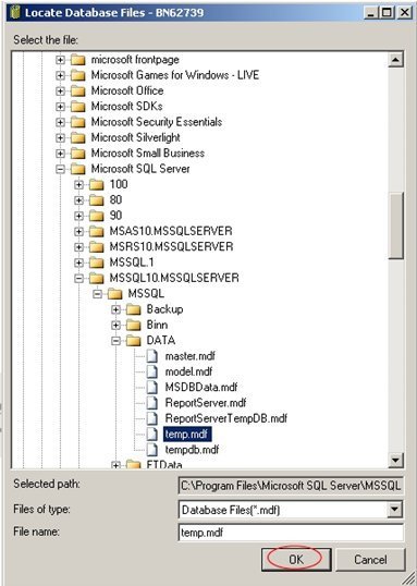 Tentukan file database yang akan di Attach, setelah itu klik OK